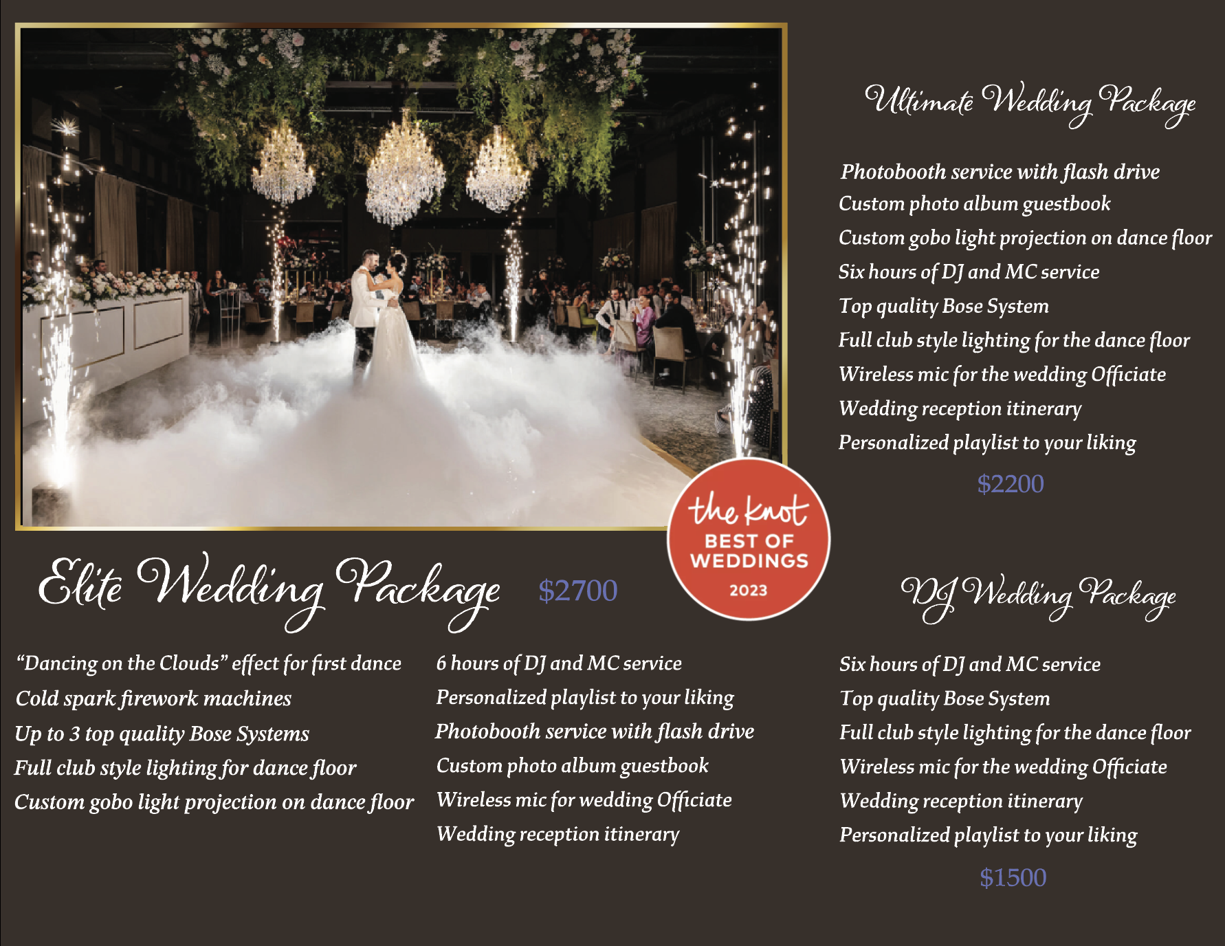We are so glad you stopped by to see what Elite Party DJ can do for you on your very special day. We have been in the DJ business for the past 20 years and the Master of Ceremonies/Disc Jockeys for hundreds of weddings!